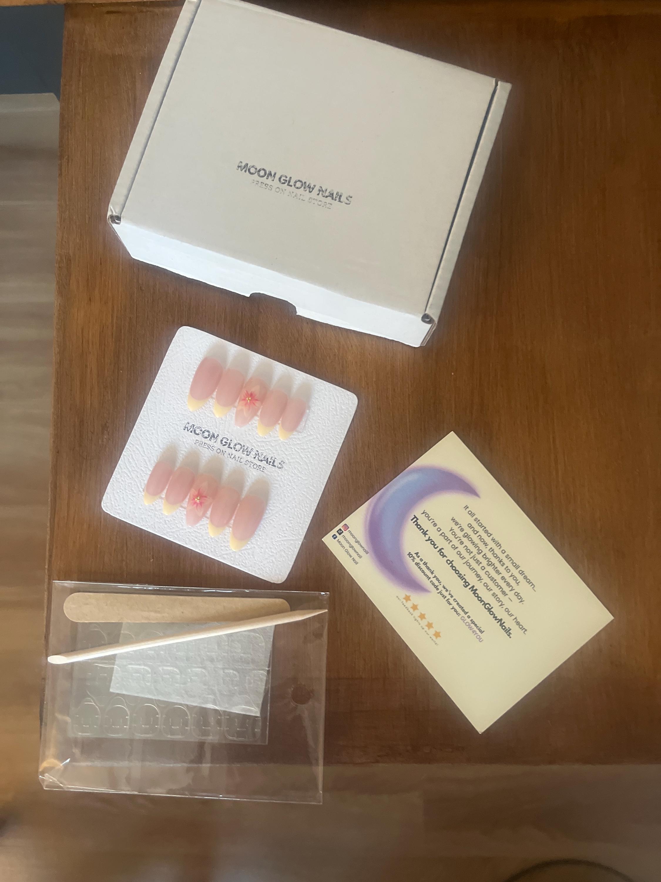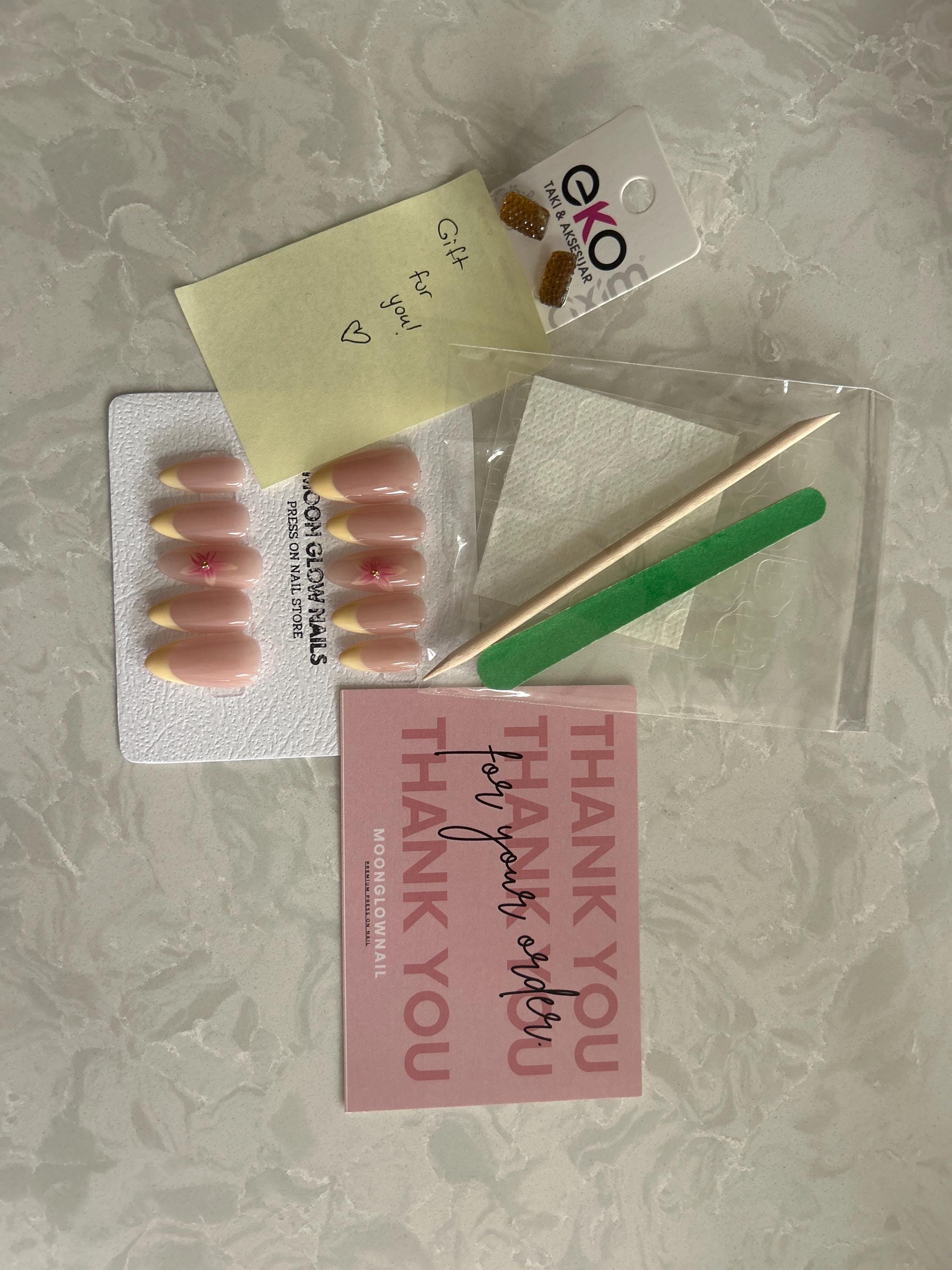nails are sooo cute! really good quality and look exactly like the images! seller messaged to check everything was okay with my parcel and included a free little gift in my parcel which is just so lovely! 100% recommend and will be buying again for sure!