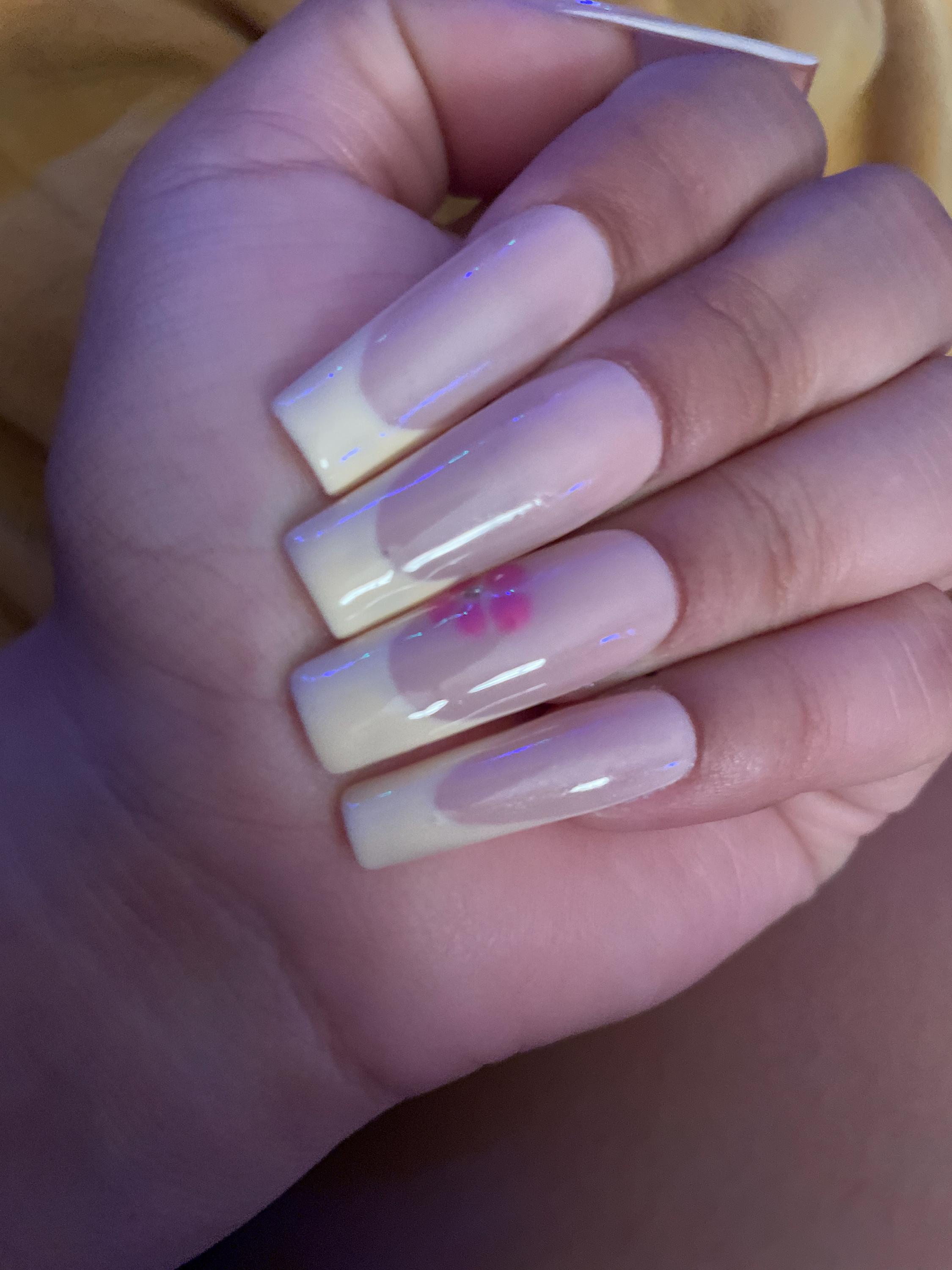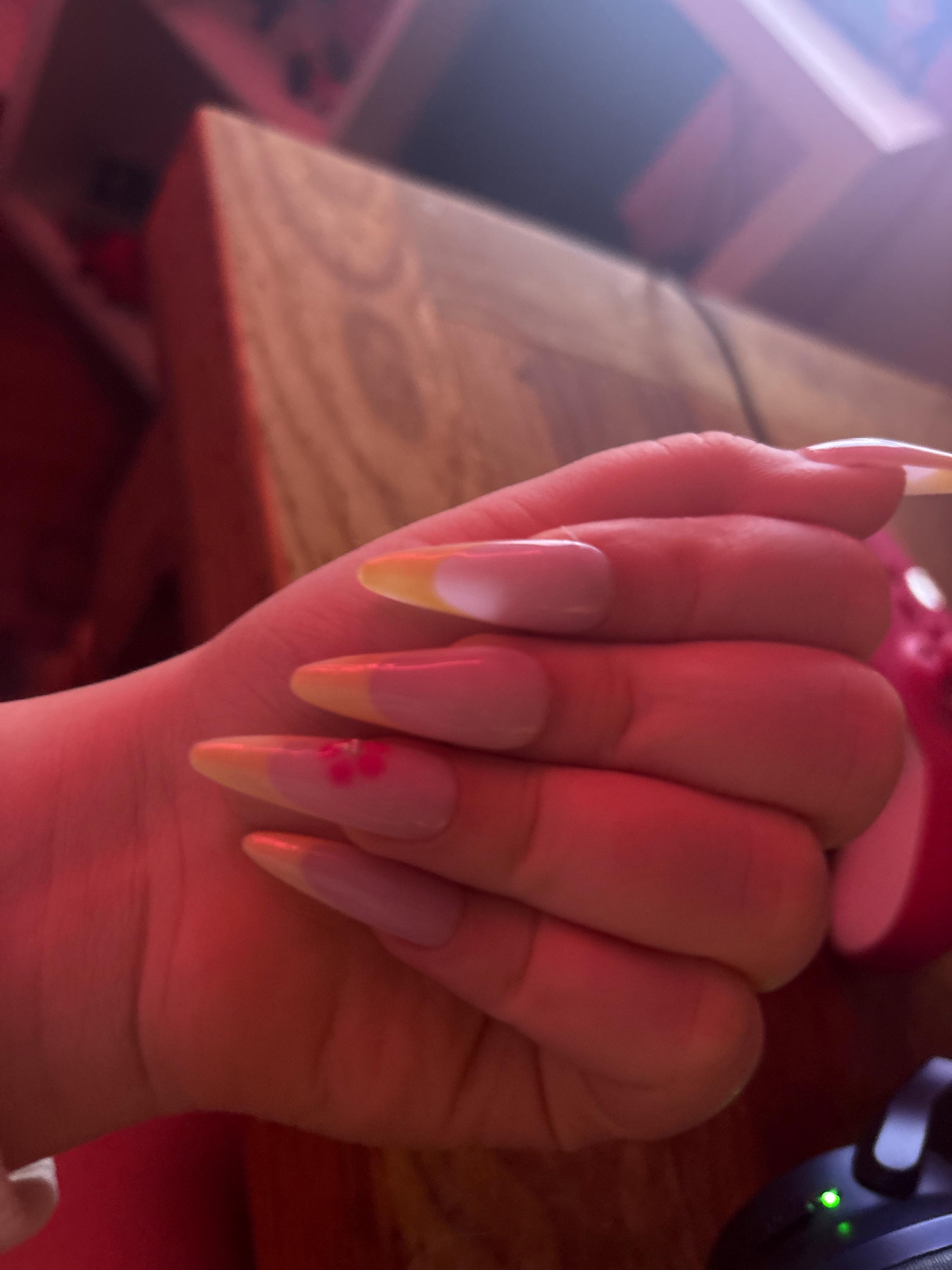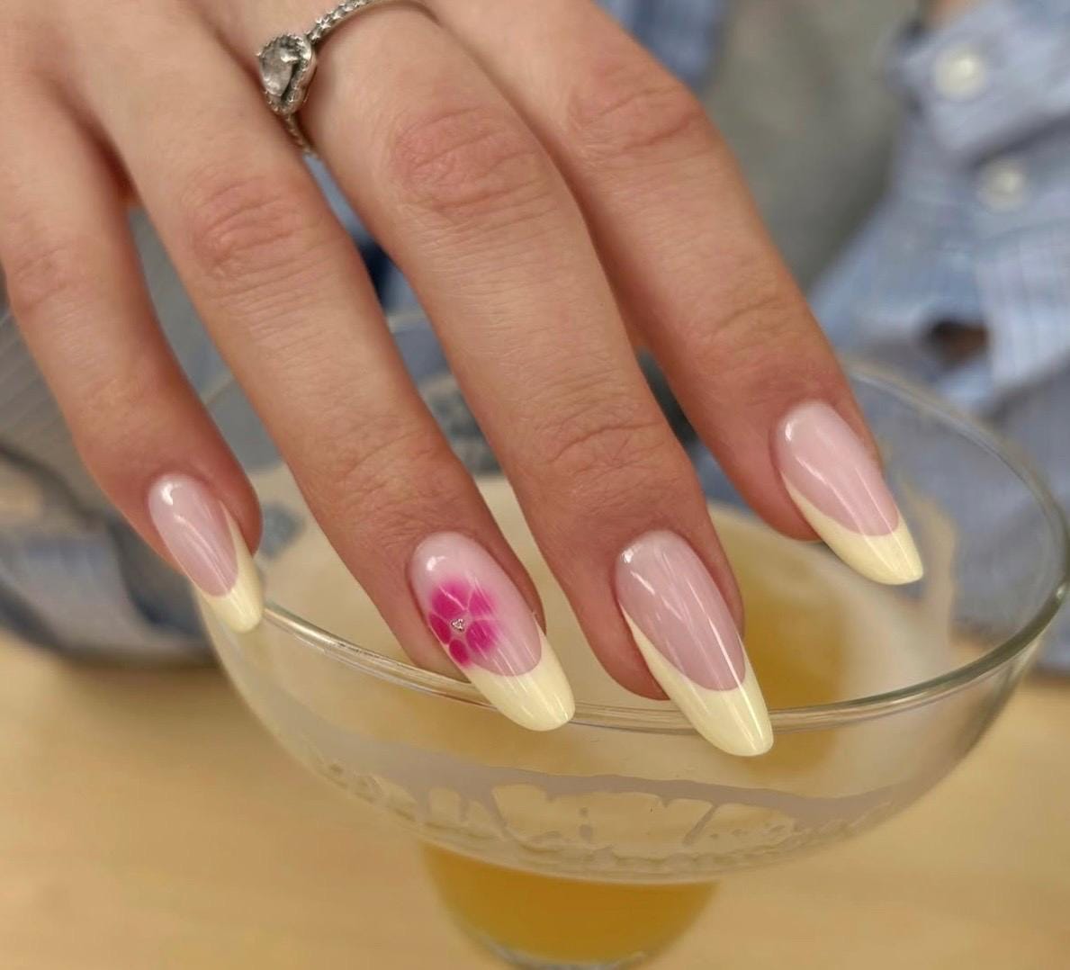 Almond Press On Nails: French Tip, Summer Flower, Pink & Yellow