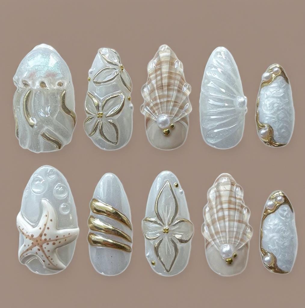 Featuring trendy designs like chrome nails, 3D gel art, ombré blends, French tips, gothic details, seashells, pearls, rhinestones, and more — there's a perfect match for every mood and season. Reusable, durable, and easy to apply, our nails are ideal for daily wear, special events, holidays, or gifting.