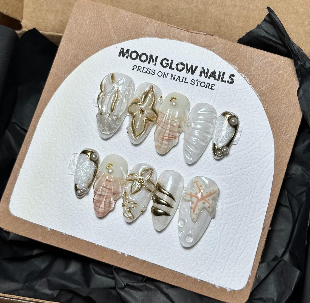 I am beyond obsessed with this beach set of nails. They are identical to the picture and so gorgeous. When I reached out to the seller to ask about purchasing an extra starfish nail because it was my absolute favorite, she offered to make it for me free of charge. I can’t wait to buy my next set🩷
