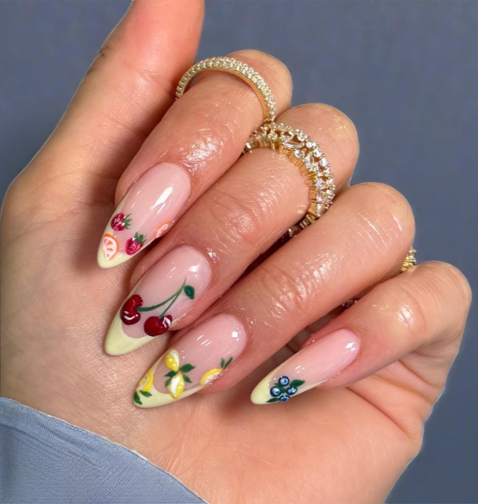 Summer Fruit Press On Nails: Medium Almond, Cherry & Lemon Design