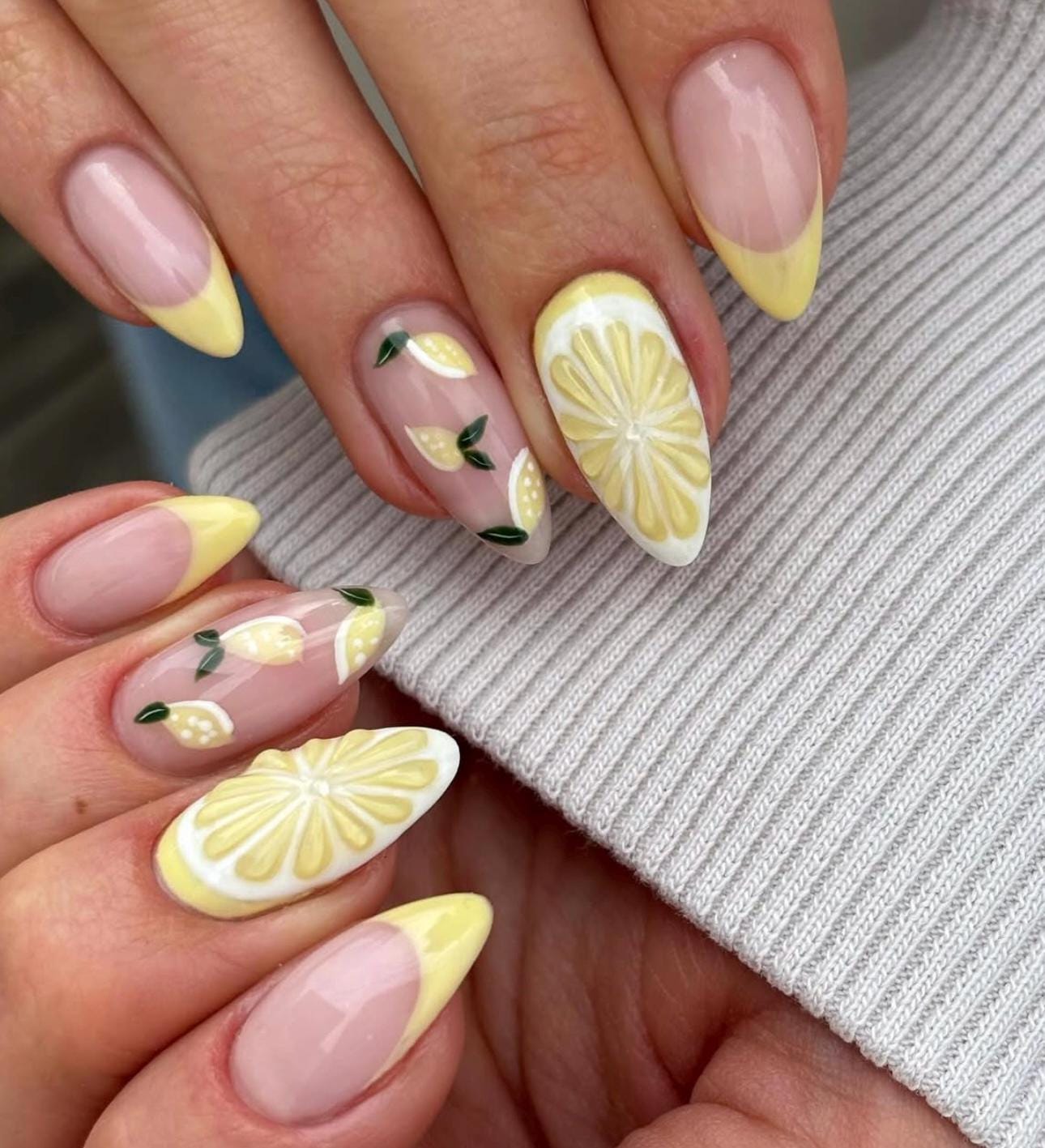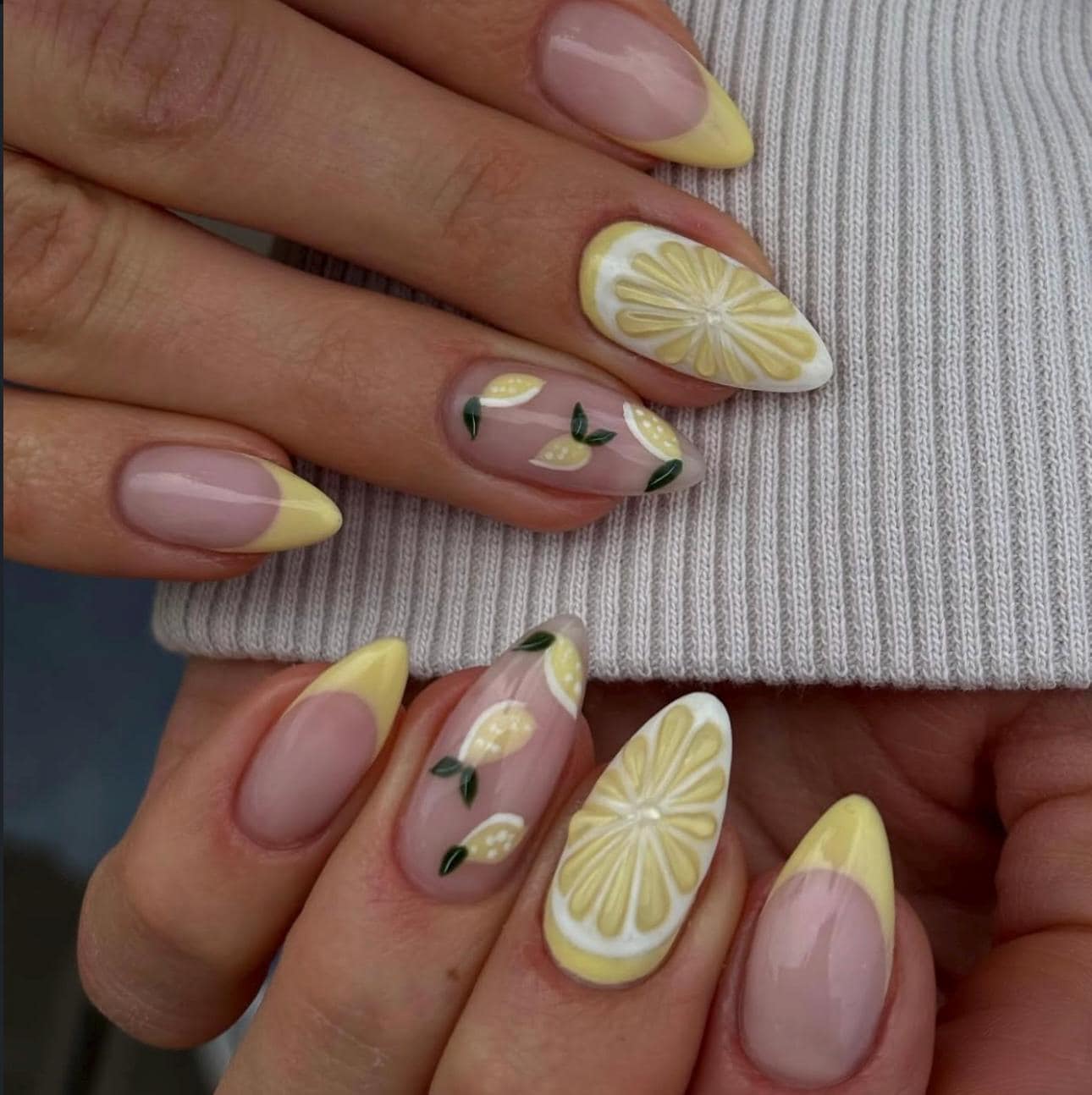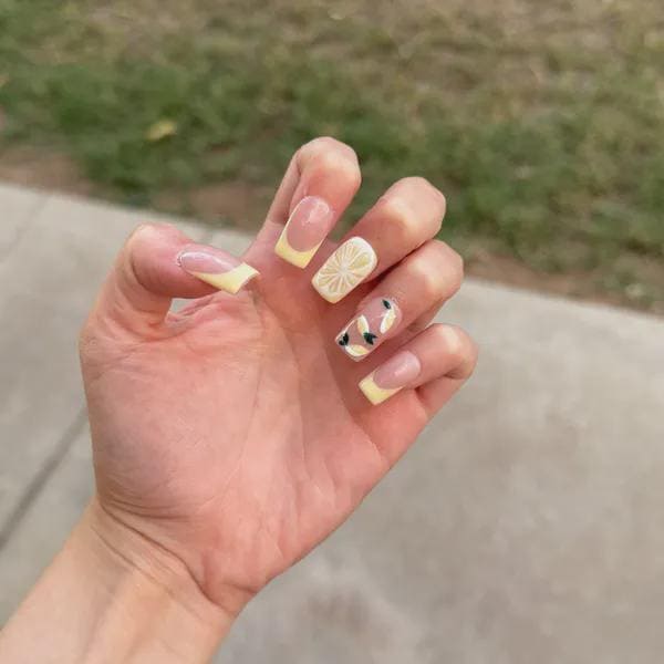 Lemon Yellow Press On Nails: 3D Flower, Summer Beach Style