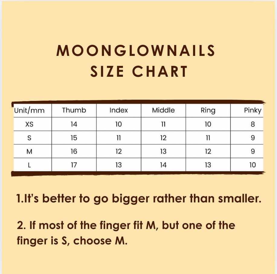 Each set includes multiple sizes to ensure a perfect fit for most nail shapes. If you’re unsure, we also offer custom sizing — feel free to message us!
