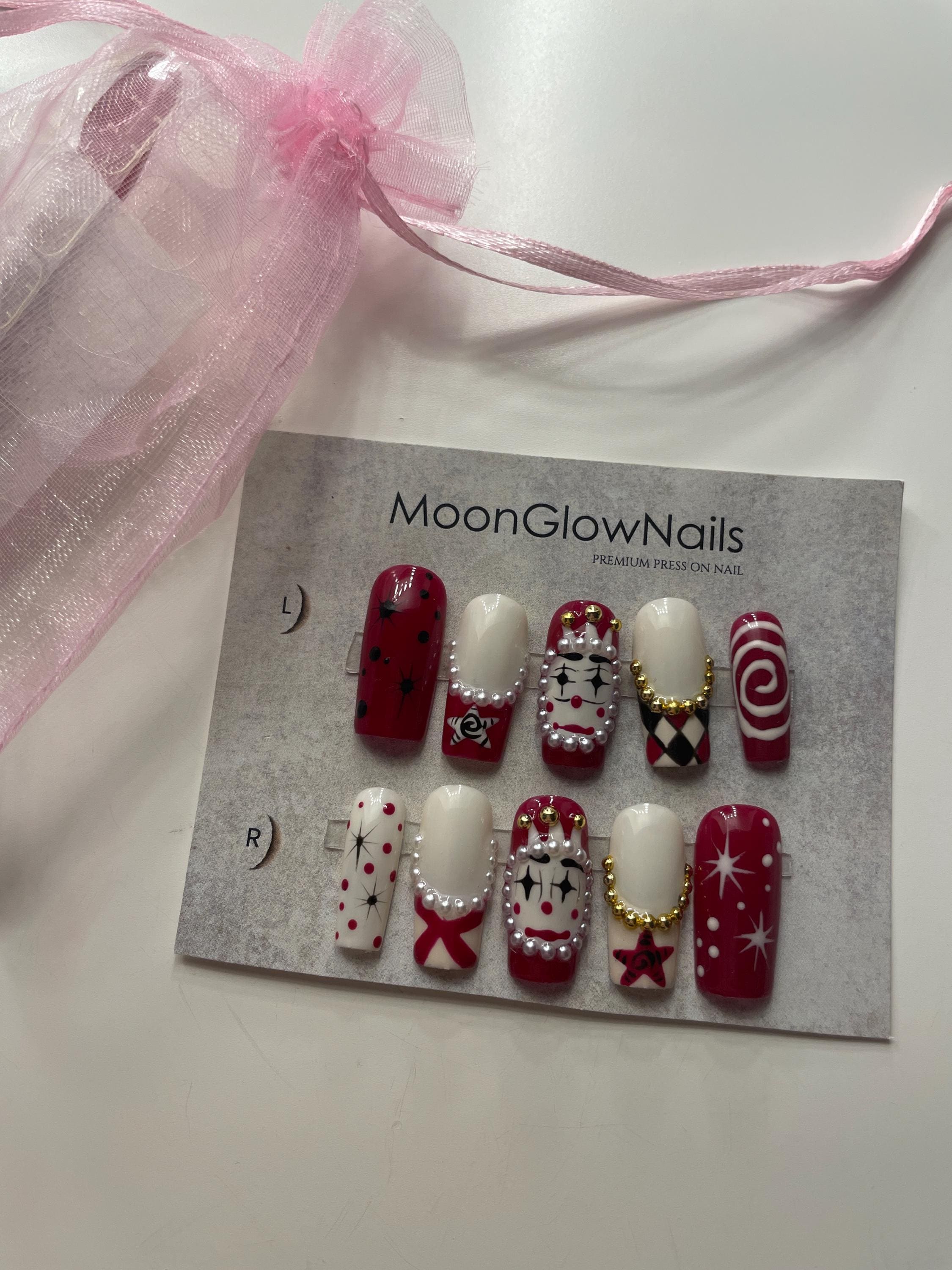 This is my first time buying nails in Esty and I’m so happy with what I got! It’s exactly like the picture, I will order custom sizing next time just because the nail for my thumb doesn’t fit 100%; but that is my fault for measuring incorrectly 😅 The shop owner is so kind and is so helpful by updating you on when you order has been shipped. I’m definitely ordering from them again 🩷🩷