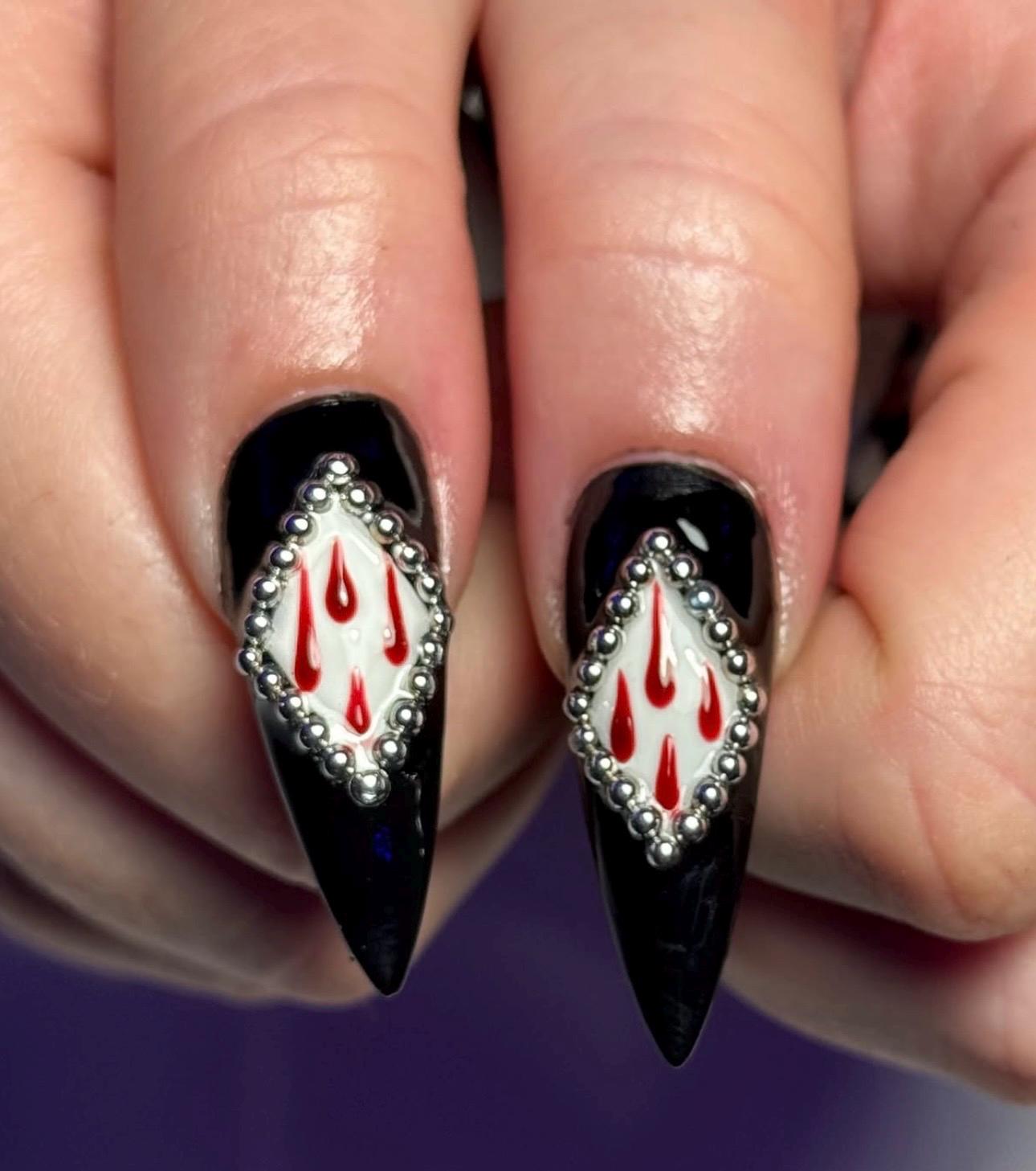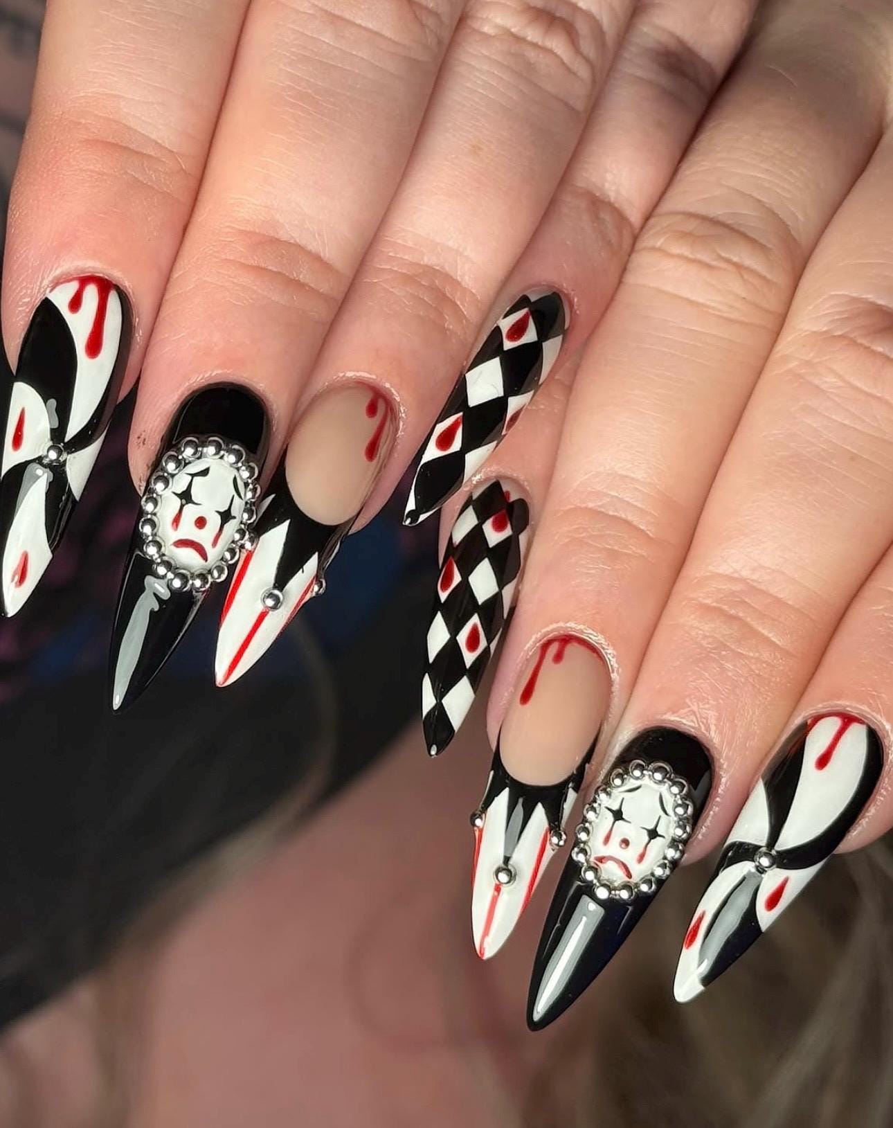 🎃 Halloween Vibes: Perfect spooky nails featuring creepy clown faces and blood drip effects.