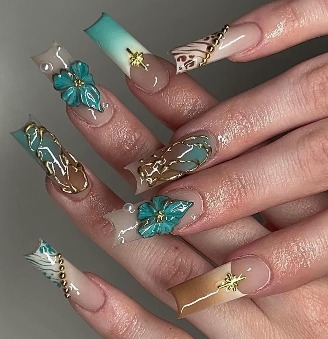 • 🌊 Ocean-Inspired Elegance: A dreamy mix of turquoise, nude, and gold tones reminiscent of seaside luxury.