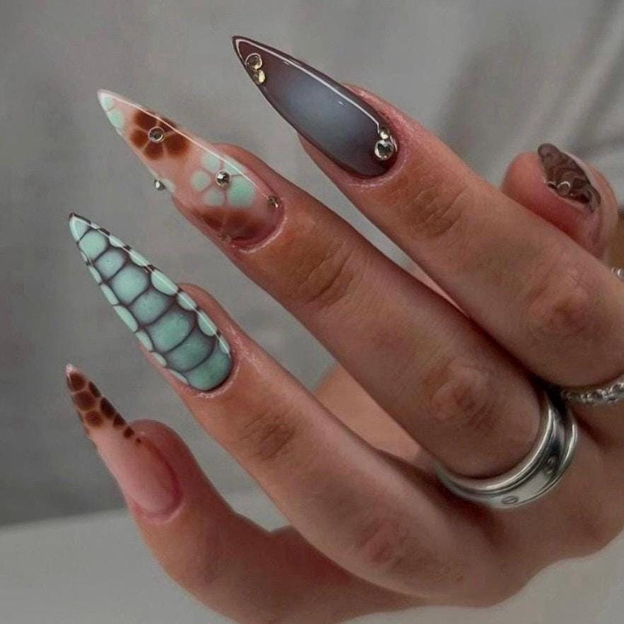 Make a bold statement with this Futuristic Reptile-Inspired Press On Nail Set!