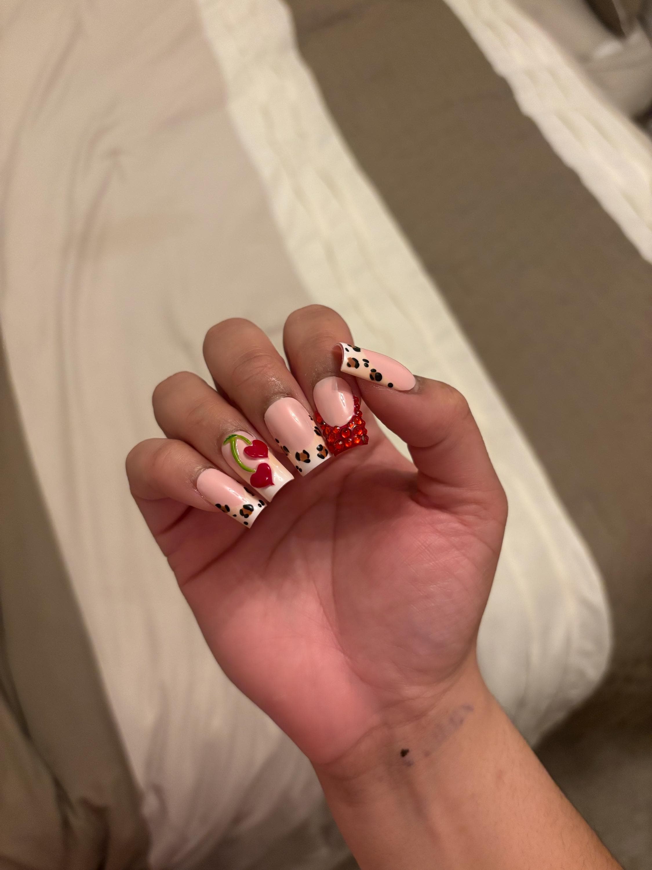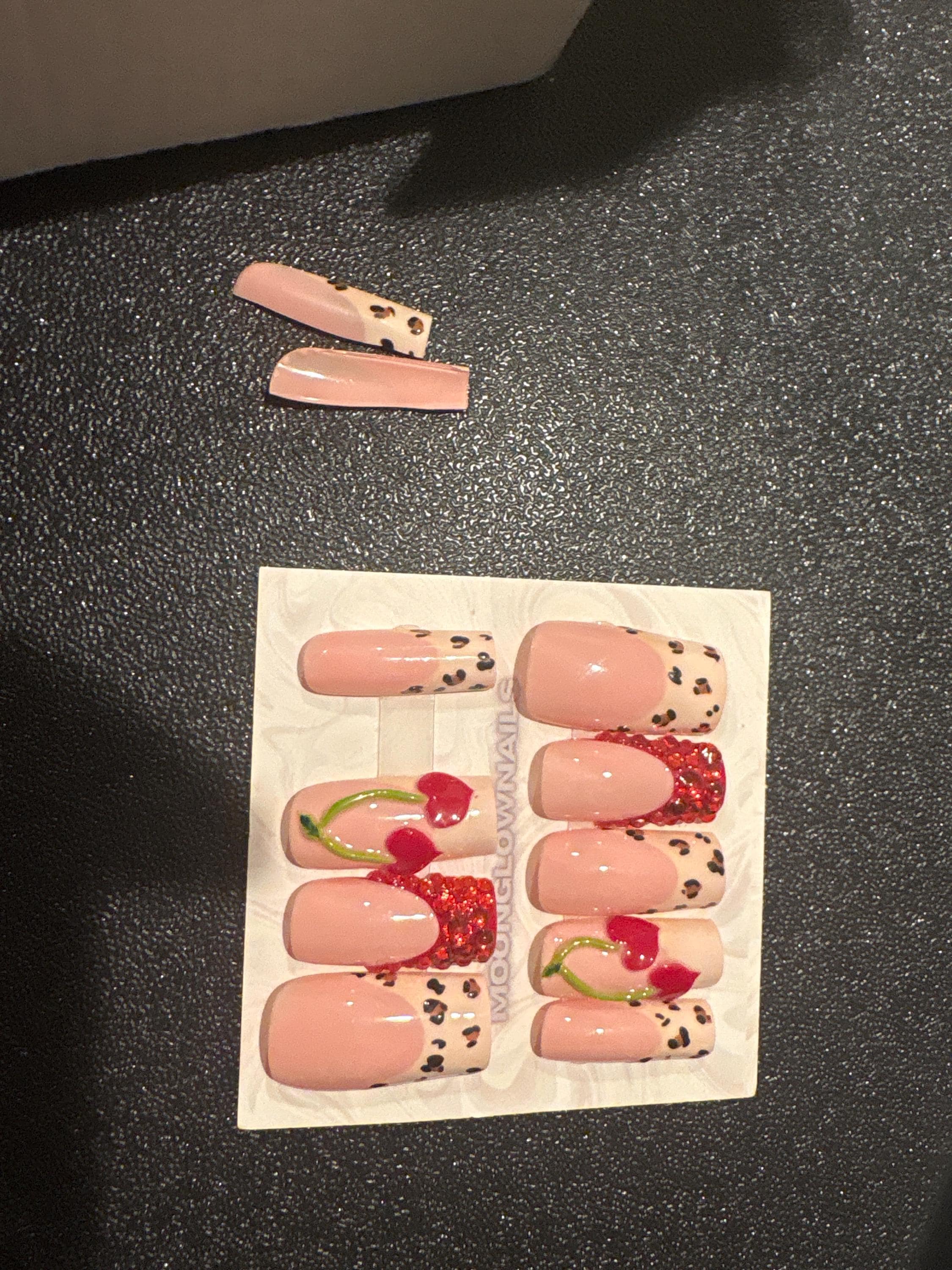 🍒 Cherry Heart & Leopard Press On Nails – Handmade Luxury Nail Set