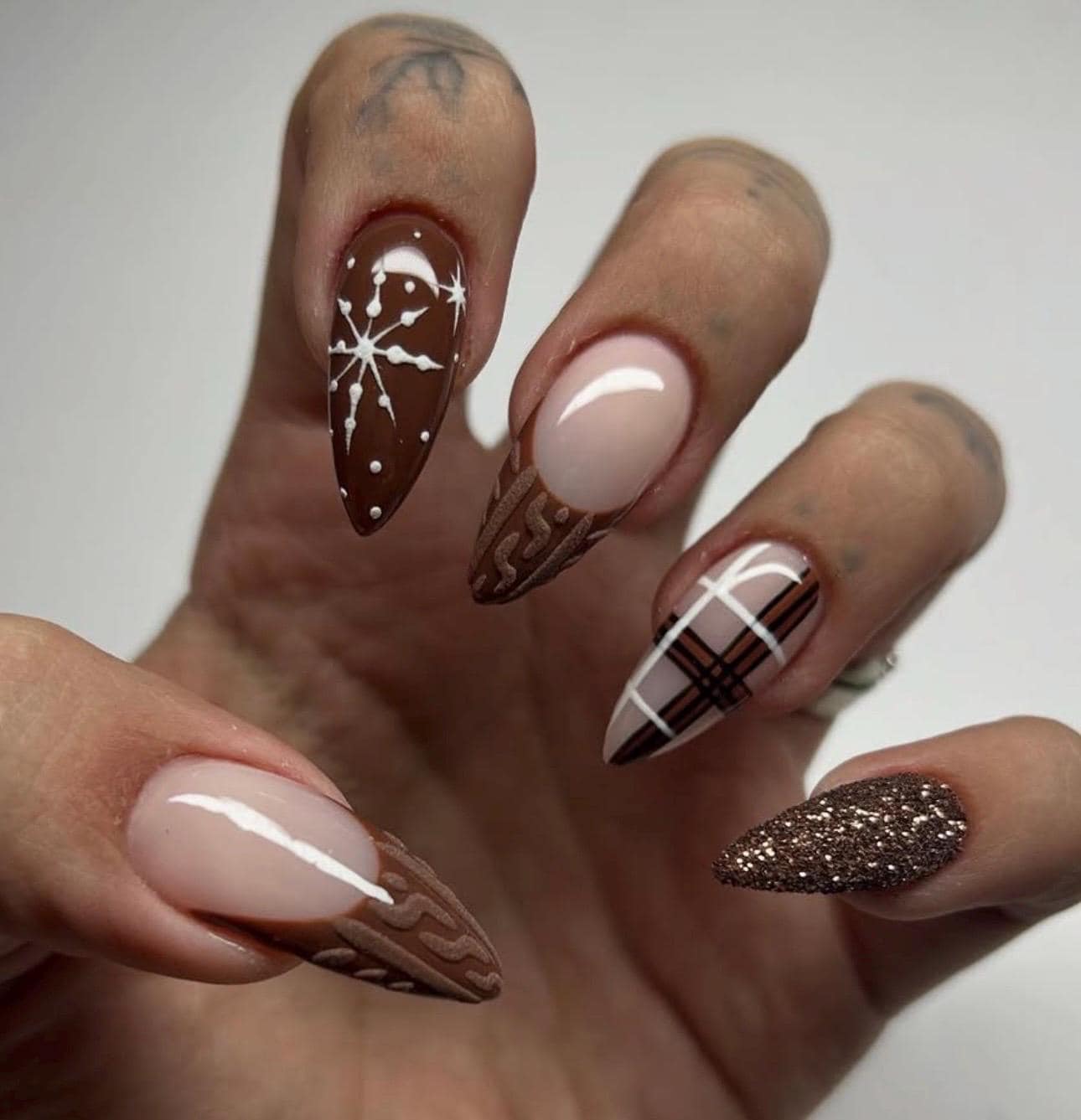 Chocolate Snowflake Winter Press On Nails – Cozy Christmas Nail Set