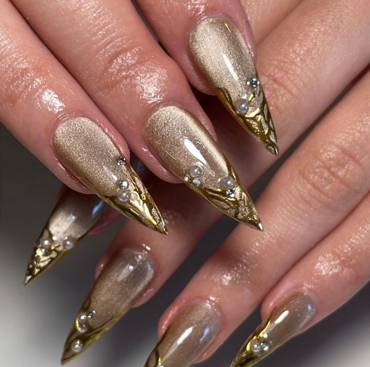 Elevate your look with this luxury neutral press on nail set, designed with rich brown tones, soft nude bases, and elegant gold chrome accents for a high-end, timeless aesthetic.