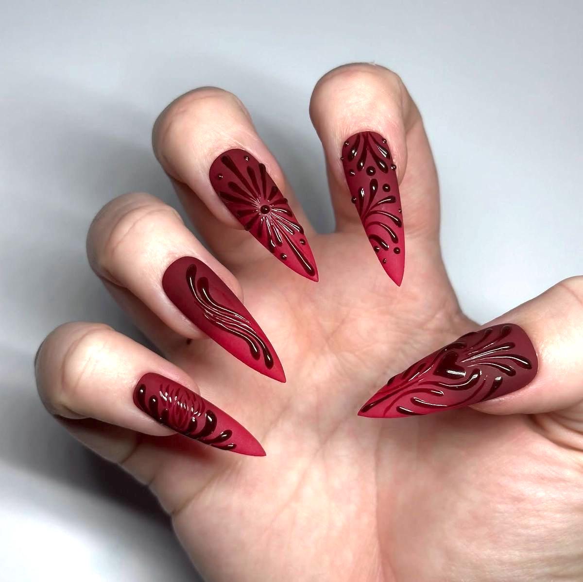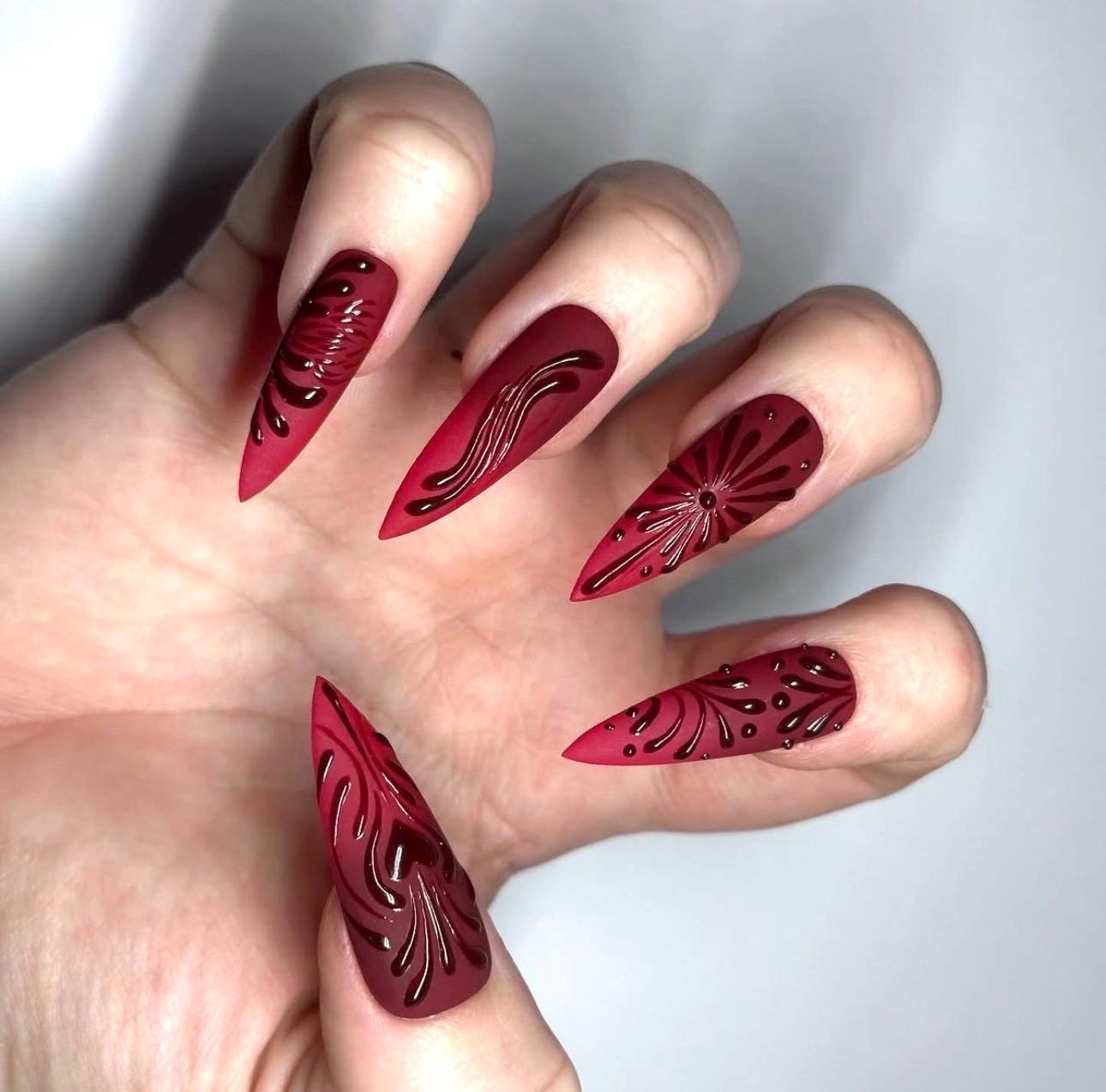 These deep burgundy gothic stiletto press on nails are designed for those who love dark femininity, bold elegance, and statement looks.