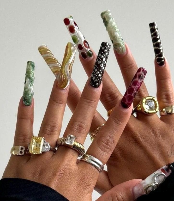 This artistic mixed design press on set is created for those who see nails as a form of self-expression and wearable art.